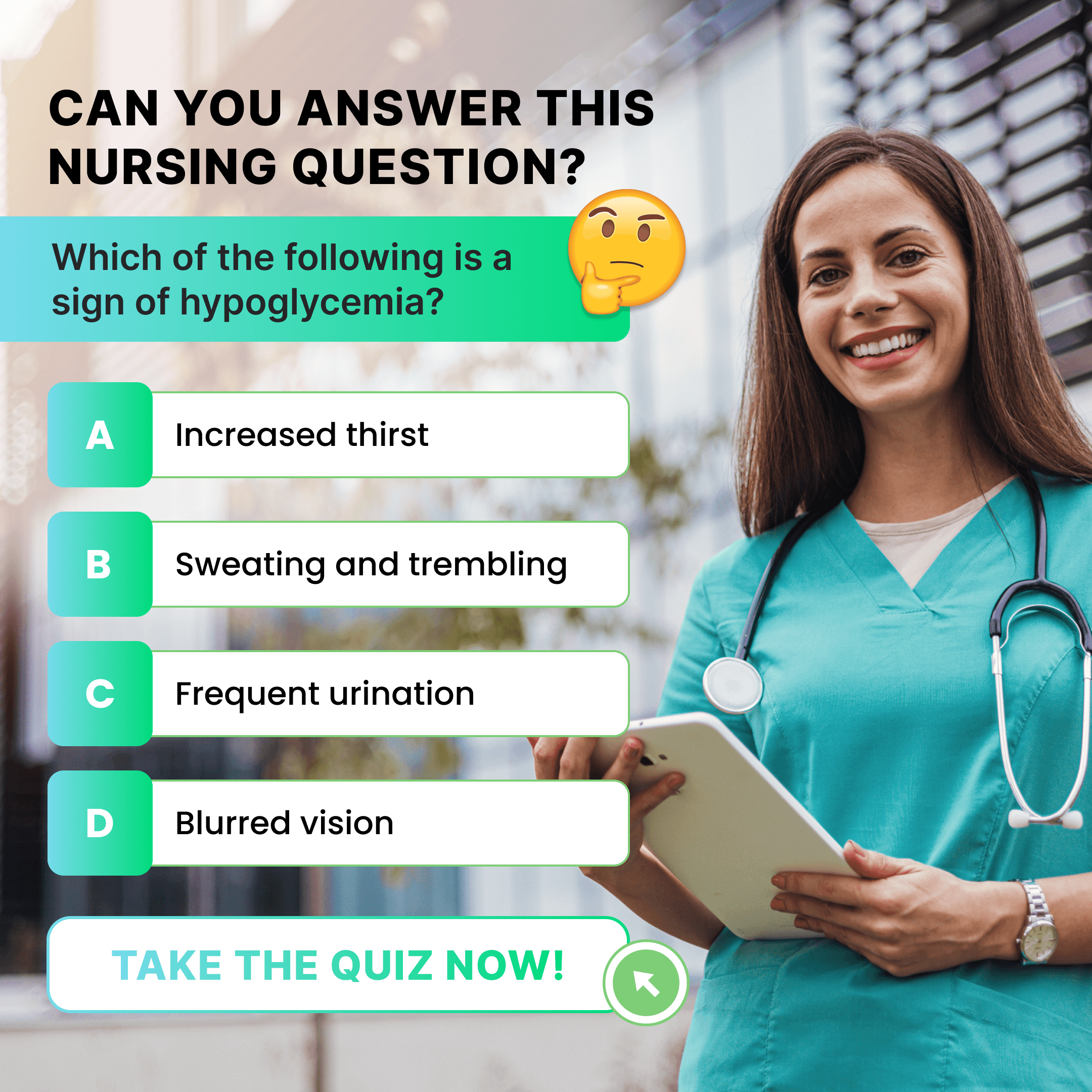 Multiple choice questions with 4 options work very well